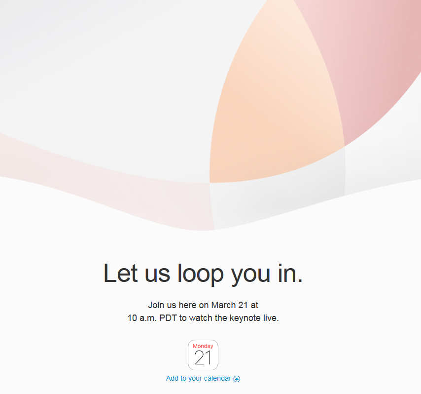 發布日期:2016-03-12 關鍵詞:新iphone或發布!蘋果發布會時間確定:3月22日凌晨 已有 5893 人瀏覽